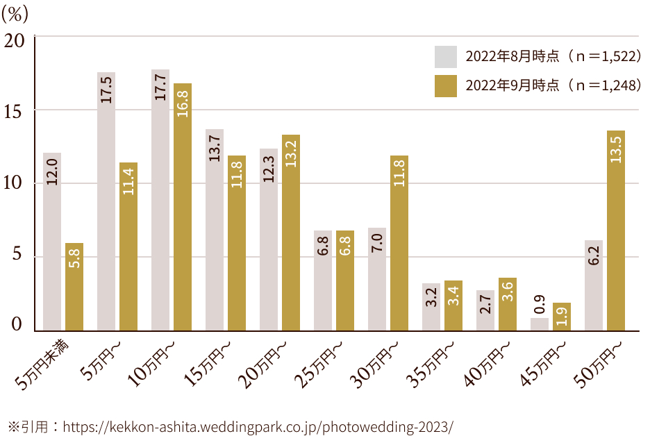記念日関係は、そもそもの相場は高いのですが、表からもわかるように、年々撮影にかけるコストが上がる傾向にあります。